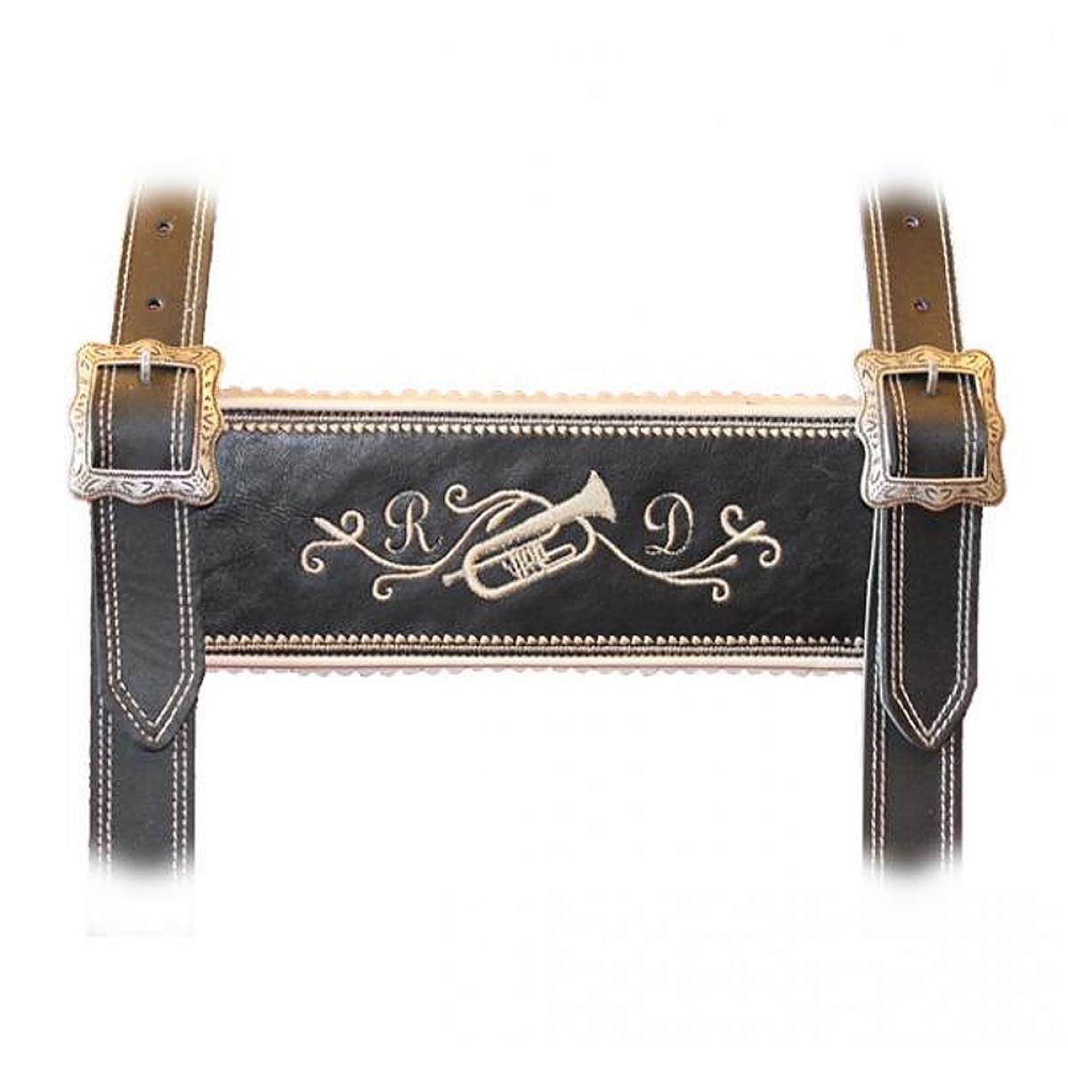 - Individueller Hosenträger Motiv ‚Trompete‘ und Initialen, schöner schlichter gestickter Rand